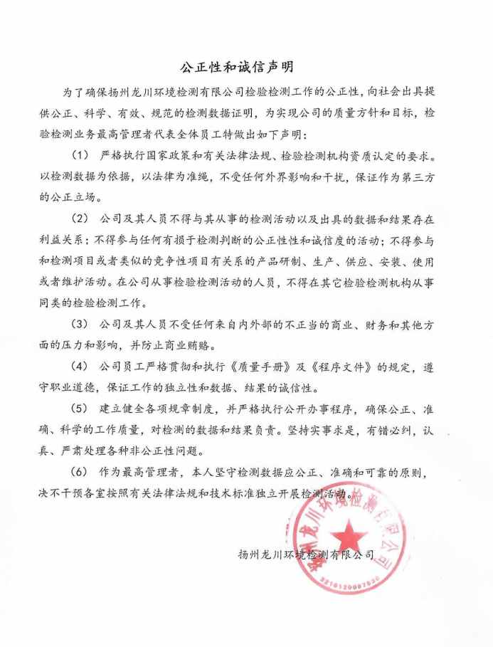 揚州龍川環(huán)境檢測有限公司成立于2020年1月19日,2021年通過江蘇省實驗室資質認定評審專家組評審考核。公司目前主要承接生活飲用水、環(huán)境類(水和廢水)、污泥檢測業(yè)務,以及提供相關技術服務。公司固定資產總額達800多萬元,總面積800平方米。